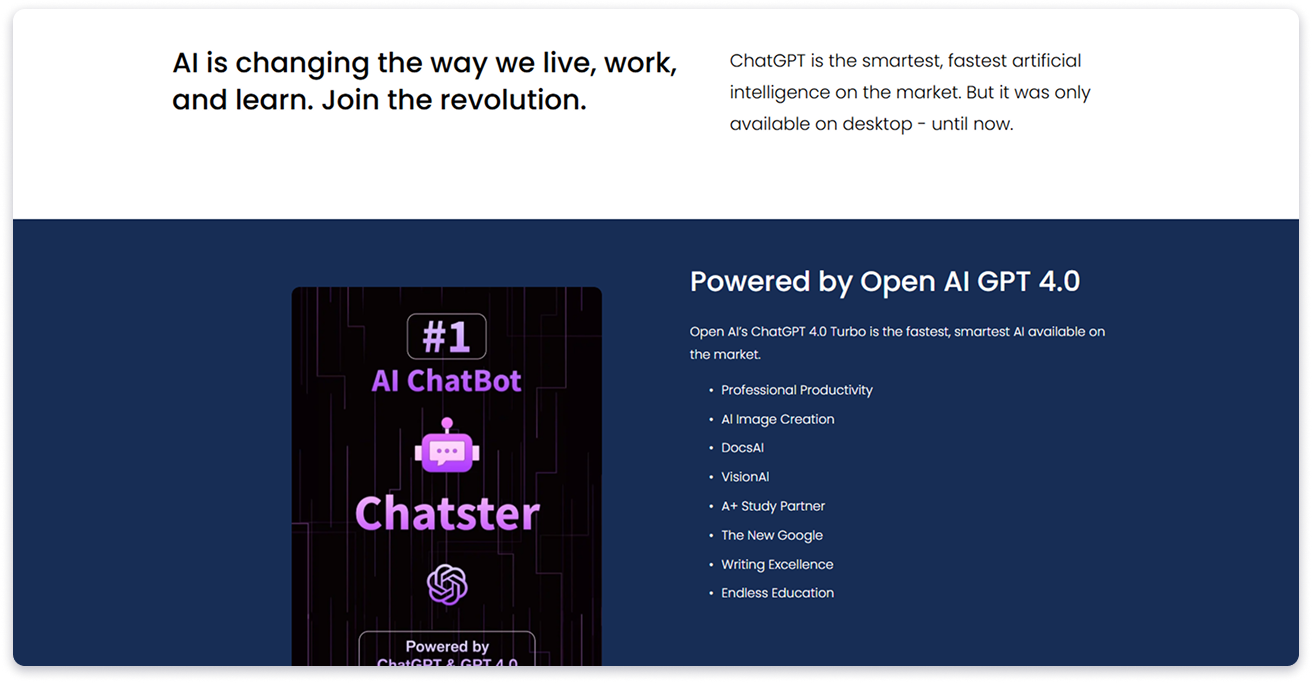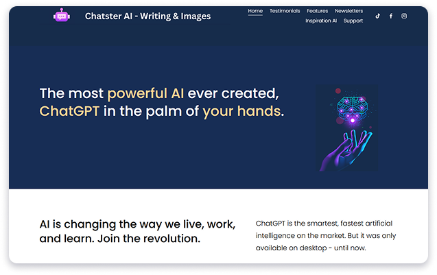 Chatster AI is a US-based mobile application built to deliver AI-powered writing assistance and image generation through a seamless, mobile-first experience. The platform enables users to generate content, interact with conversational AI, and create images directly from their smartphones.